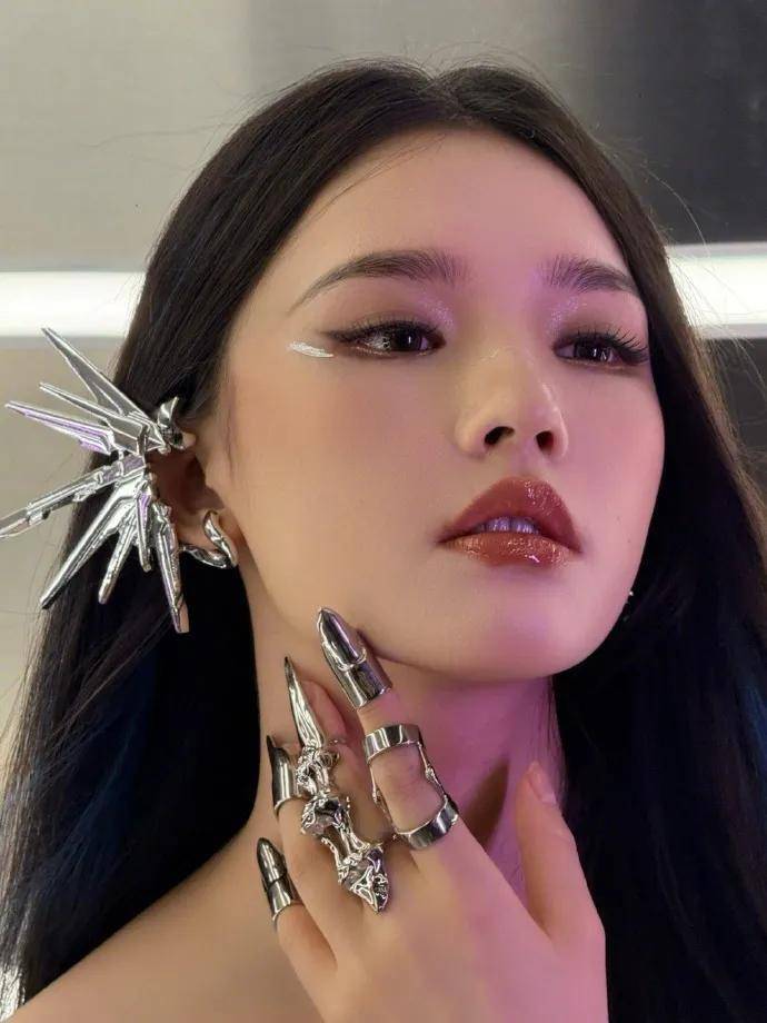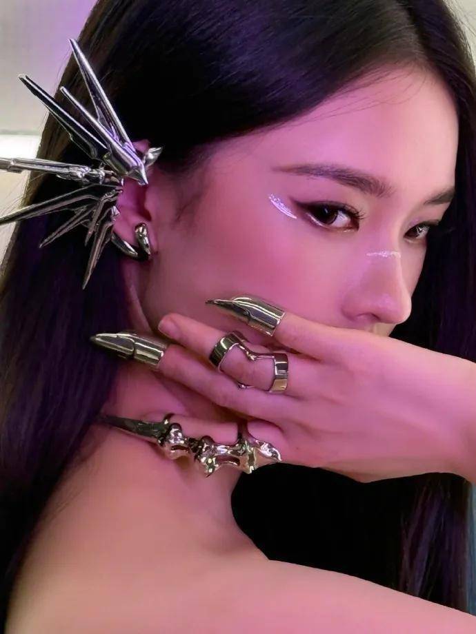 林允的耳朵和手指甲上都戴着银色的修长饰物,她单手抚摸自己的俏脸,露出光滑的美背,肌肤娇嫩如雪,绝对性感撩人!