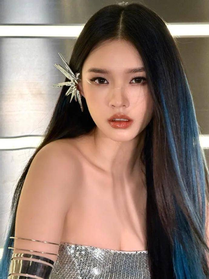 林允穿着银色抹胸衣裙,她俏脸成熟妩媚,眉清目秀,烈焰红唇,乌黑的长发如瀑布般飘逸,露出白皙的香肩和手臂,侧身回眸惊鸿一瞥,绝对性感撩人!